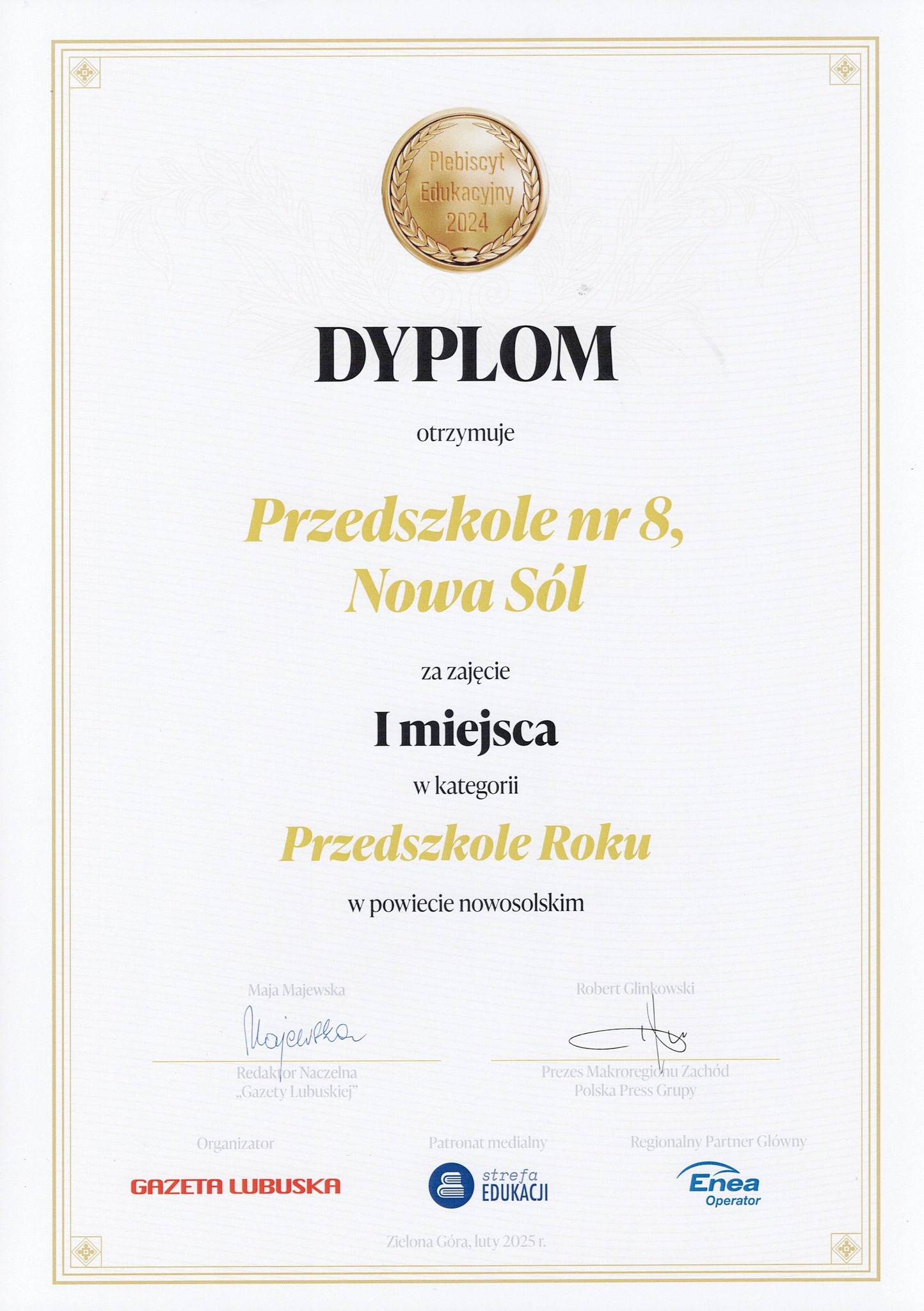 Pierwsze miejsce w Powiecie Nowosolskim - Przedszkole Roku!